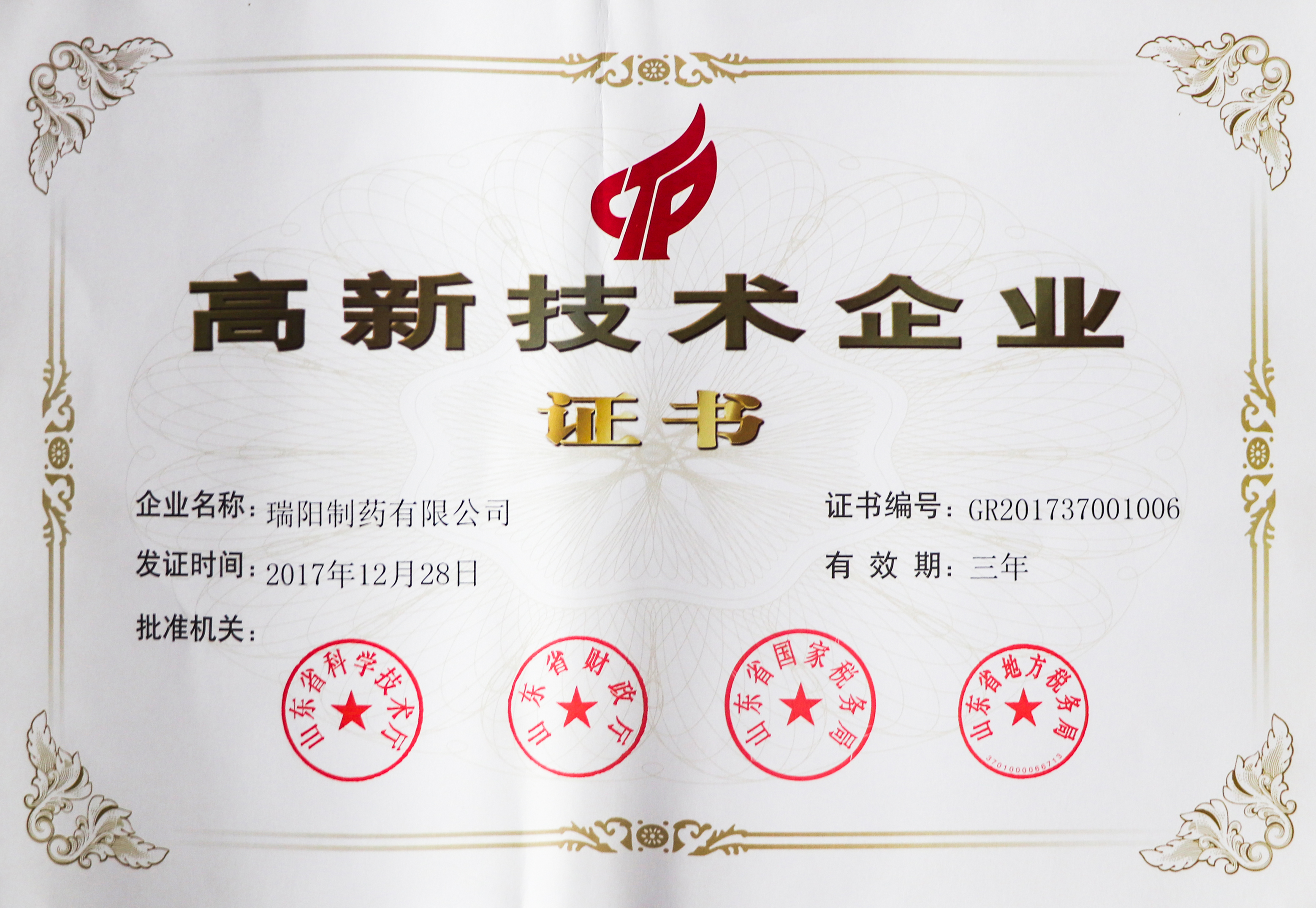 高新技術企業證書