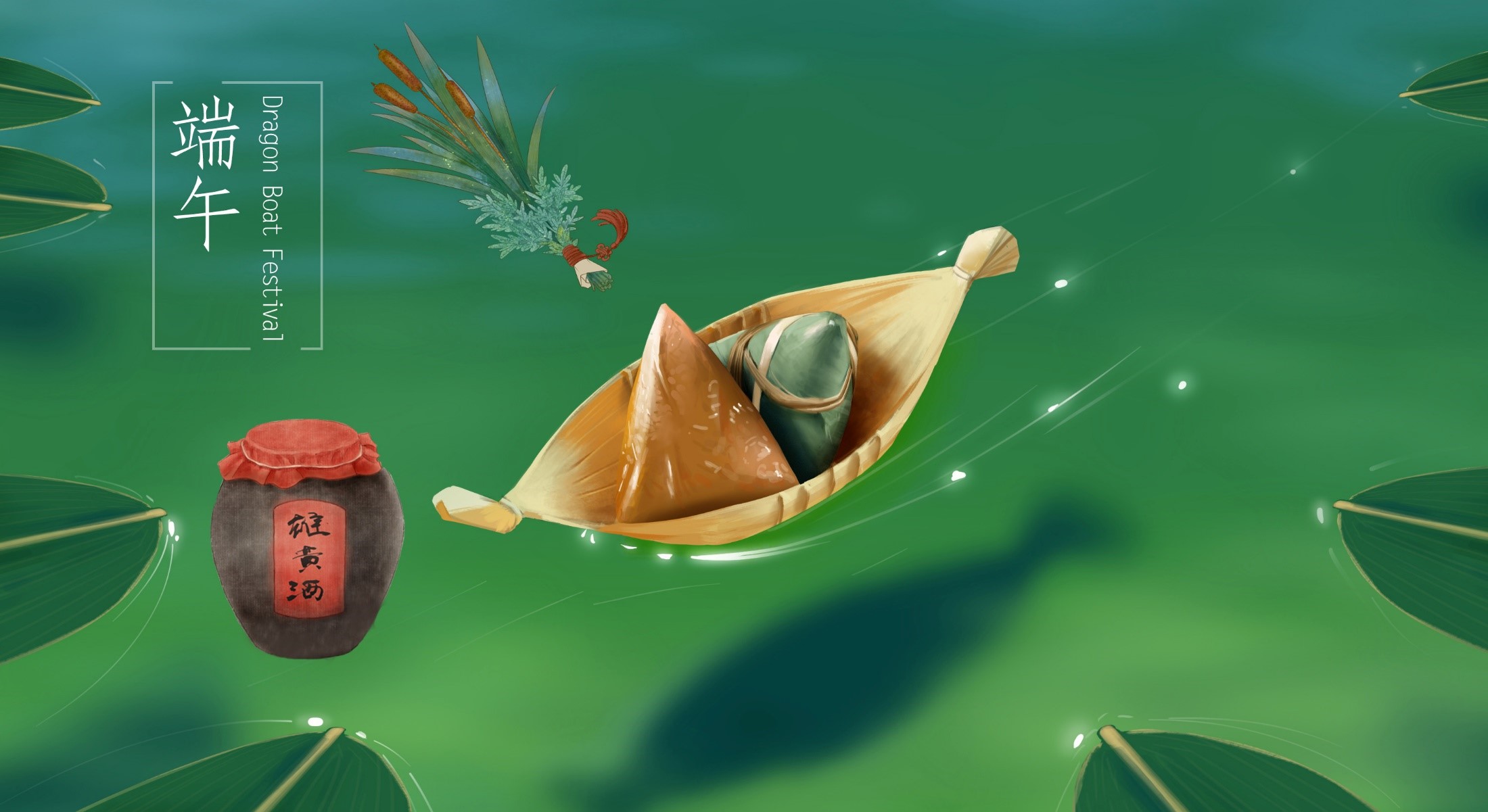 五月初五端五日,艾草菖蒲粽香時。龍舟飛渡飲雄黃,楚辭偉詩后人祭。